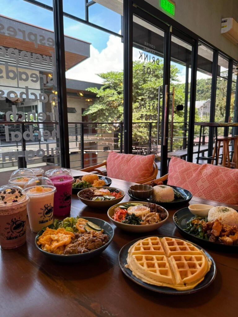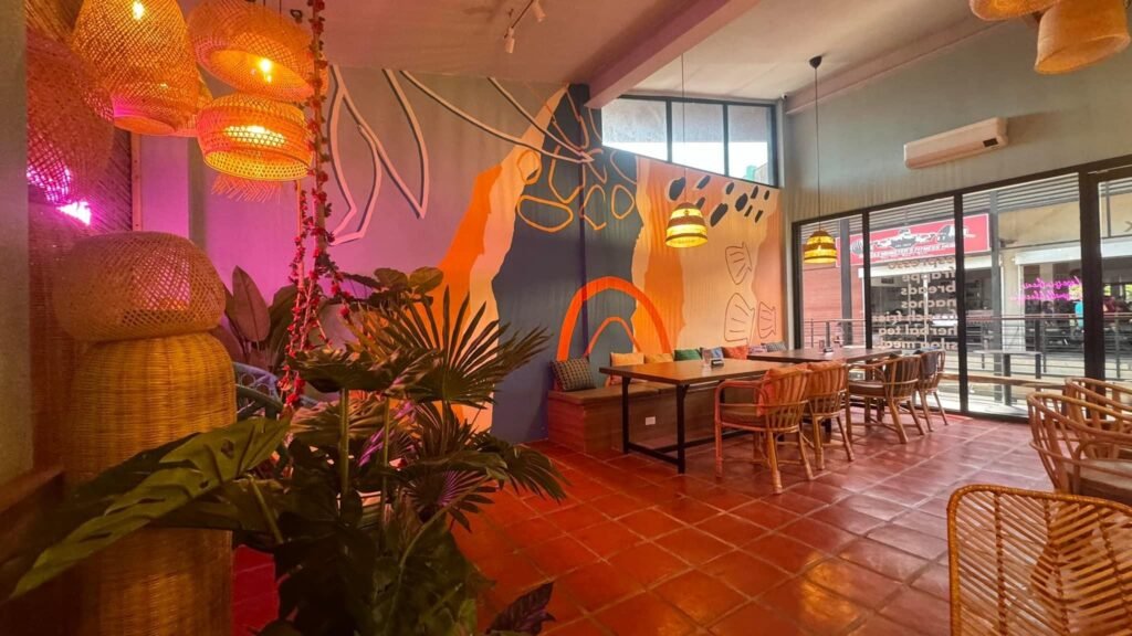 Cafe aims to highlight Elyu’s presence by featuring La Union’s renowned products. ✨The design incorporates Abel cloth for pillows and matches its pattern with geometric Machuca tiles. The street art reflects San Juan’s murals, and the floor tiles are inspired by Red Clay Pagdamilian. Additionally, the cafe utilizes basket weaving and bamboo crafting techniques for its hanging baskets, chairs, and bamboo decor, celebrating the region’s manufacturing and agricultural heritage